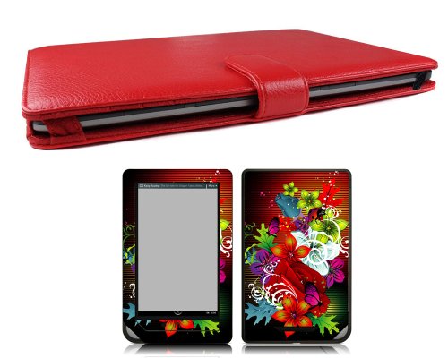 Bundle Monster Barnes & Noble Nook Color (NookColor) Synthetic Leather Case Cover Jacket + Skin Art Decal Sticker + Screen Protector Ereader Accessories Combo Feature